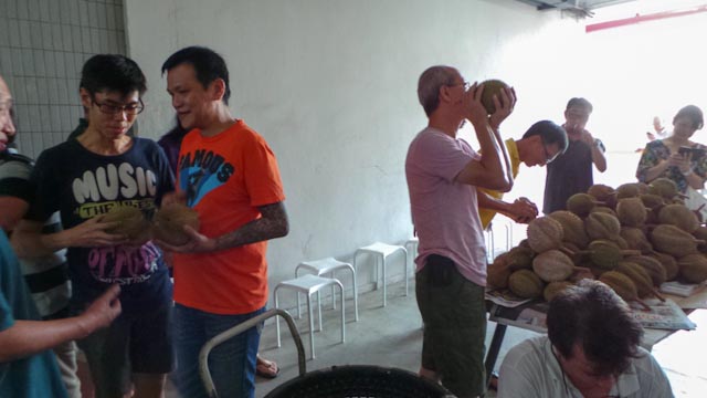 Prison Fellowship organized a durian feast event last evening. Turn out was excellent. Kindness Movement Chairman Dr William Wan started the event with appreciation to the people and the volunteers for making the event meaningful and successful. Everyone tasted their favorite durian and Ah Seng the durian supplier did a great job of preparing the fruit for easy opening. Little do we know that durian feasts can generate much communication among the people. The event closed with a group photo.